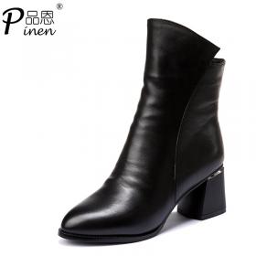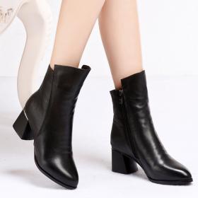 2016秋冬季新款尖头粗跟短靴女高跟真皮加绒中跟马丁靴女靴子女鞋 优质全头层牛皮,品质女鞋