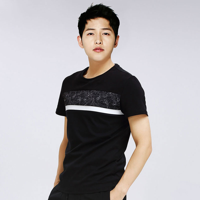 商品名称:马克华菲短袖T恤 夏装新款舒适圆领条纹拼接男简约修身短袖上衣