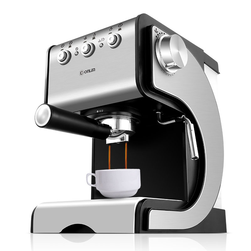 Donlim/东菱 DL-KF500S 咖啡机家用全半自动意式商用蒸汽式打奶泡 不锈钢机身 20帕进口泵浦 双温系统